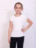Джемпер для девочки из трикотажного полотна кулирка с лайкрой с коротким рукавом. Джемпер полуприлегающего силуэта, с втачным рукавом из шифона, без застежки. Спереди на кокетке настрочено кружево, прикреплен декоративный элемент. Рукав короткий, из двух частей, присборенный по окату. Низ рукавов обметан на краеобметочной машине. Низ изделия подогнут. Срез горловины обработан узкой окантовочной лентой из того же полотна.