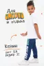 Брюки для детей дошкольного и младшего школьного возраста из трикотажного полотна футер с лайкрой и кашкорсе. Брюки на поясе из эластичного трикотажа с резинкой внутри, низ брюк на манжете из эластичного трикотажа. На передней части штанин боковые карманы.
