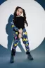 Костюм детский свободного силуэта, состоит из свитшота и брюк (шароваров). Свитшот укороченный с карманом кенгуру на полочке, на рукаве яркий декор в форме звезды. Горловина и низ рукавов обработаны эластичной рибаной. Брюки свободного кроя с карманами в швах оформленными декоративной тесьмой, имеют яркие элементы в виде звезды и шнурка. Низ брюк обработан манжетой с отворотом из основной ткани.