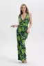 Стильный и универсальный элемент летней одежды - комбинезон с брюками. Верх комбинезона соединён с брюками, тем самым создаётся непрерывный образ сверху вниз, визуально удлиняя фигуру. Передняя и задняя части верха комбинезона состоят из двух отдельных элементов, которые соединены на запах, образуя элегантный V-образный вырез. По линии талии вшита резинка, а в комплекте есть пояс. Брюки свободные, прямые с боковыми карманами.