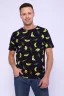 Мужская футболка с рисунком «Бананы» (100% хлопок, набивная кулирка) Основные характеристики модели: Ткань: Кулирная гладь (кулирка) — тонкое, но прочное трикотажное полотно из 100% хлопка. Она хорошо пропускает воздух и впитывает влагу. Рисунок: Набивная ткань с банановым принтом. Размерная сетка: Широкий диапазон от 48 до 62 размера.