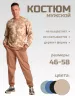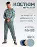 Стильный мужской костюм из футера 2-х нитки. Состоит из свитшота и брюк, выполненных из ткани разных расцветок, что добавляет эффектности. Свитшот с рукавом реглан, с округлым вырезом горловины обработан обтачкой. Низ изделия и рукава обработаны манжетами из эластичного материала. Брюки с притачным широким поясом, карманами формы «хулиган», низ подогнут с резинкой.