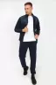 Мужской костюм спортивного плана. Кофта и карманы по бокам на молнии, сверху карман - обманка. На рукавах, по бокам кофты и сверху - вставка из плащевки. Воротник - стойка, рукава и низ кофты на манжетах. Брюки на манжетах, карманы на молнии, с декоративной листочкой. Сбоку на брюках и толстовке вышивная надпись.