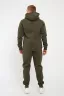 Костюм мужской изготовлен из качественного футера трехнитки с начесом, идеальный вариант для холодных зимних дней. Толстовка с капюшоном, дополненным шнуром и карманом-кенгуру. На груди изделия выполнена текстовая вышивка-логотип. Брюки на резинке, для дополнительного регулирования объема талии имеется шнурок. Два боковых кармана без молнии. Брюки так же украшены вышивкой.