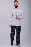 Комфортная мужская пижама из 100% хлопка. Брюки в клетку с боковыми карманами, на эластичном поясе и футболка с длинным рукавом и стильным принтом на полочке.