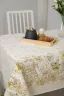 Светлая скатерть с изысканным рисунком в стиле Диор, способна украсить даже самую необычную кухню. Золотистые узоры и бабочки на белом фоне выглядят очень лаконично и дорого, особую утонченность дизайну придают предметы античности. Скатерть из рогожки Диор практичная, долговечная и элегантная.