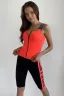 Бриджи-велосипедки облегающие, длинной выше колена, сверху на резинке. Вдоль боковых швов расположены лампасы из отделочного полотна.