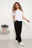 Черные трикотажные брюки силуэта "бананы". Трендовая модель из маломнущегося материала. Комфортный эластичный пояс и удобные по глубине карманы.