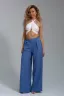 Брюки-палаццо – мастхэв базового женского гардероба. Модель выполнена из качественной льняной ткани. Материал прочный, приятный на ощупь, хорошо струится и дышит. Изделие представлено в классических модных цветах. Широкий крой со складками и высокой талией создает красивый силуэт и обеспечивает удобную посадку, на любой тип фигуры. Пояс выполнен на специализированной поясной машине, что добавляет изделию качество на долгое время и эстетичность. На брюках имеются боковые карманы с усиленными закрепками на закрепочной машине. На модели представлен 46 размер - фигура соответствует параметрам размера. УХОД ЗА ИЗДЕЛИЕМ: бережная стирка при максимальной температуре 30ºС, не отбеливать, машинная сушка запрещена, глажение при 110ºС, профессиональная сухая чистка, стирать вывернутым наизнанку, глажение с использованием специальной сетки, стирать с изделиями похожих цветов . Брюки такого плана идеально впишутся в городской стиль, элегантность и комфорт, женственные силуэты и мягкие линии, расслабленные, нарочито небрежные образы, стильные и комфортные. Широкие брюки со складками – модная одежда для женщин на любой случай жизни. Подойдут для стильных повседневных луков, офисных аутфитов, нарядных вечерних образов и прогулок.