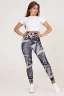 Цветные легинсы, выполненные в оригинальных расцветках, подарят эстетическое удовольствие. Они подходят для занятий различными видами спорта: для фитнеса, танцев, йоги, физкультуры, художественной гимнастики, бега на улице, пилона, тренировок, баскетбола, волейбола, большого тенниса, кроссфита, хореографии, балета, спортзала, бокса, пилатеса, стрип пластики, тверка, пол дэнс. Это очень удобная вещь не только в плане комфорта. Комбинируя их с разными элементами одежды, можно удачно создать образ в том или ином стиле. Легинсы выполнены из плотного эластичного материала, с широким поясом, которые плотно облегают фигуру, не просвечивают, не растягиваются после носки.