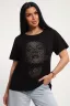 Футболка женская из гладкокрашенного трикотажа, хлопок 100%. Прямого силуэта, свободного облегания. горловина круглой формы. Рукав короткий. Низ изделия прямой. На полочке принт, шелкография.