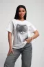 Футболка женская из гладкокрашенного трикотажа, хлопок 100%. Прямого силуэта, свободного облегания. горловина круглой формы. Рукав короткий. Низ изделия прямой. На полочке принт, шелкография.