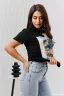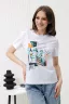 Футболка женская - это классика женского гардероба любой девушки. Это базовая модель с ярким принтом отлично смотрится с джинсами, юбками, брюками. Прямой силуэт, втачной рукав, горловина округлой формы обработана обтачкой из основного полотна.