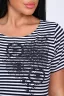 Стильная женская футболка из вискозы в полоску - настоящая находка для модниц, любящих комфорт и красивый вид. Модель с круглым вырезом горловины и коротким рукавом , слегка приталенного силуэта красиво подчеркнет изгибы фигуры и сделает вас женственной в любом наряде: в дерзком молодежном или сдержанном классическом. Футболку украшает изящный рисунок-цветок, что делает ее неповторимой и оригинальной. Универасальная модель женской футболки на каждый день способна стать частью офисного, нарядного, вечернего и повседневного образа.
