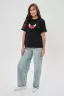 Женская футболка приталенного кроя из кулирки, идеально подчеркивает линии фигуры. Классический короткий рукав и круглый вырез делают её удобной и повседневной. Центральная деталь изделия — оригинальный принт на груди в виде красного сердца с крыльями, символично объединяя романтичность и воздушность. Такая футболка обязательно привлечёт внимание и станет любимой вещью вашего гардероба!