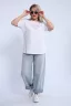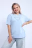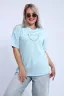 Футболка для женщин прямого силуэта, длиной до середины бедер. Рукав втачной, короткий. Горловина округлой формы. Полочка футболки украшена принтом.