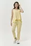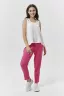 Майка трапецивидного силуэта средней длины, с округлой горловиной, без рукавов, с удлиненной спинкой. На кокетках полочки расположены декоративные люверсы. Горловина и проймы обработаны бейкой из основного полотна.