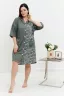 Халат женский, полуприлегающий, слегка расширенный к низу, с капюшоном. Застежка на петли-пуговицы. На полочке два накладных кармана. На спинке кокетка, и складка, которая придает изделию дополнительную свободу движения. Использование двух тканей-компаньонов придает изделию особую актуальность.
