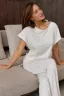 Элегантный комплект домашнего костюма от бренда TALISENSE Представляем вам стильный комплект домашней пижамы женской, который станет незаменимым в вашем гардеробе. Этот костюм включает в себя футболку с завязками и с брюками палаццо, выполненный из премиальной вискозы, что обеспечивает невероятный комфорт и приятные ощущения на коже. Футболка свободного кроя с элегантными завязками позволяет регулировать посадку по фигуре, создавая при этом игривый и женственный силуэт. Нежный материал ласково обнимает тело, даря ощущение уюта и расслабления. Это идеальный выбор для тех, кто ценит комфорт, не жертвуя при этом стилем. Брюки палаццо – это воплощение изысканности и комфорта. Их широкий крой обеспечивает свободу движений, а струящаяся вискоза создает эффектный, летящий образ. Благодаря высокой посадке и мягкому поясу, брюки идеально сидят на талии, подчеркивая достоинства фигуры. Они дарят ощущение легкости и невесомости, делая каждый ваш шаг изящным. Комплект TALISENSE – это не просто одежда для дома, это ваш персональный оазис комфорта и стиля. Премиальная вискоза, из которой изготовлен этот костюм, отличается гипоаллергенными свойствами, воздухопроницаемостью и способностью красиво драпироваться. Она приятна к телу, не электризуется и сохраняет свой первоначальный вид даже после многочисленных стирок. Этот комплект станет идеальным дополнением к вашим домашним вечерам, утреннему кофе или просто моментом для себя. Он создан для того, чтобы вы чувствовали себя роскошно и непринужденно в любой ситуации. TALISENSE – это синоним качества, элегантности и безупречного вкуса, воплощенный в каждой детали.
