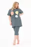 Хлопковый костюм с бриджами от бренда MODALINA состоит из: туники полуприлегающего силуэта с коротким рукавом и прорезными карманами, длина футболки - ниже бедер, горловина округлой формы, с ненавязчивым принтом. Бриджи классической длины с прорезными карманами, с широкой резинкой, которая не передавливает животик.