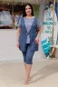 Костюм женский "тройка": Футболка, жилет, бриджи. Футболка с округлым вырезом, короткими рукавами и разрезами в боковых швах. Жилет прямого силуэта. Полочка и спинка из двух частей: верхней и нижней. Застежка на одну декоративную кокосовую пуговицу на уровне линии талии. Бриджи облегающие из х/б ткани с лайкрой.