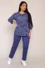 Этот легкий летний трикотажный костюм идеально подходит для домашних повседневных занятий. Брючный комплект сочетает комфорт и стиль, удовлетворяя потребности женщин разных размеров, включая категорию больших. . Костюм выполнен из приятного на ощупь хлопка, что делает его отличным выбором для жаркой погоды. Материал позволяет коже дышать, создавая ощущение прохлады даже в самый знойный день лета. Легкость ткани придаёт дополнительное удобство во время долгого ношения. Брюки имеют эластичную талию, что улучшает посадку и обеспечивает свободу движений. Благодаря такому дизайну модель прекрасно сочетается с любой домашней одеждой. Комплект "двойка" включает в себя футболку с принтом и брюки. Для многих женщин выбор одежды играет важную роль не только для выхода, но и дома. Трикотажная основа костюма нежно соприкасается с кожей, позволяя чувствовать себя уютно каждый день. Такой вариант особенно подходит дамам большого размера. Отдельного упоминания заслуживает свободный крой костюма. Этот элемент дизайна подчеркивает женственные линии тела, не причиняя дискомфорта и не ограничивая движения.