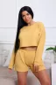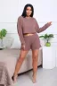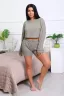Костюм домашний с шортами из мягкого трикотажа СОТЫ. Комфортный комплект состоит из стильного, укороченного лонгслива с длинным рукавом на манжете и шорт с удобными боковыми карманами. Оригинальный 3Д рисунок, образованный путём сложного переплетения волокон, внешне напоминает пчелиные соты. Полотно мягкое, эластичное и прочное, легко стирается, практически не мнётся, не деформируется. Длина рукава в таблице измерений указана от начала горловины.
