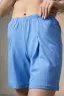 Костюм состоит из укороченной футболки "оверсайз" и шорт. Футболка с округлой горловиной. Рукав короткий. Горловина обработана бейкой из основного полотна. Шорты на резинке, со складками в верхней части передних половинок.