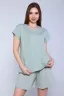 Женский летний костюм с футболкой и шортами. Рукав на футболке спущенный. Пояс шорт обработан на поясной машине. Костюм свободного кроя. Такой костюмчик подойдет для активных прогулок на свежем воздухе, будет незаменим в поездках или в отпуске на море. Отлично впишется в любой гардероб и создадут современный стильный образ на каждый день.