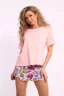 Костюм женский футболка с шортами-юбка Данная модель выполнена из трикотажного полотна кулирка (хлопок 100%). Отличная модель для дома и отдыха. Футболка свободного покроя со спущенным рукавом. Шорты-юбка с поясом 5см с тремя строчками. Отличная модель для отдыха.