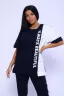 Эффектный костюм в спортивном стиле из трикотажного полотна ярких оттенков. В комплекте представлена кофта свободного кроя со спущенным рукавом и узкие, но не обтягивающие брюки. Изюминкой костюма является сочетание контрастных цветов в дизайне кофты в виде крупных латинских букв и целых вставок. Трикотажные костюмы стали одним из самых популярных и востребованных атрибутов в гардеробе современных женщин, так как не только подчеркивают стиль и индивидуальность, но и обеспечивают комфорт и удобство в повседневной жизни.