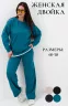 Женский костюм из мягкой, фактурной и приятной ткани. Вверх - худи оверсайз со спущенным рукавом и округлой горловиной, понизу обманка - иллюзия футболки, которая придает современный стиль двойке, низ - свободные и прямые брюки палаццо, по бокам карманы, пояс на резинке. Костюм идеально подходит для повседневной носки.