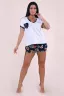 Женская пижама с шортами "Ананасы" представляет собой комплект из футболки с коротким рукавом и шорт, изготовленный из 100% хлопка (кулирка), доступный в широком размерном ряду, включая большие размеры. Описание и характеристики Материал: Большинство пижам в этом стиле выполнены из 100% хлопка, в частности из ткани кулирка или кулирная гладь, которая является легкой и дышащей, подходящей для домашней одежды и сна. Комплектация: Комплект состоит из футболки с коротким рукавом и шорт. Дизайн футболки: Футболка, как правило, прямого кроя, имеет карман на груди. Дизайн шорт: Шорты обычно свободного покроя, на мягкой широкой резинке для комфортной посадки. Размерный ряд: Широкий выбор размеров, часто от 42 до 58, чтобы удовлетворить различные типы фигур. Цвет и принт: Основной декоративный элемент — принт в виде ананасов.