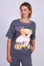 Милая пижама состоящая из футболки и брюк свободного силуэта. Футболка с отделкой кантом по горловине и рукаву, и печатью в стиле шелкографии на полочке и спинке. Зауженные брюки на резинке с карманами, имеют внизу манжет.