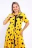 Платье, которое сочетает в себе комфорт и уникальный дизайн. Модель выполнена из мягкого материала, что делает её идеальной для повседневной носки. Свободный крой с расклешённой юбкой и акцент на талии с помощью пояса создают воздушный и женственный силуэт. Контрастное сочетание жёлтого и чёрного в гороховом принте — смелое и при этом очень гармоничное решение. Это платье — отличный выбор для прогулок, встреч с друзьями или офиса. Носите его с босоножками на каблуке для создания изысканного образа или с кедами для более расслабленного стиля.