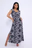 Платье женское с кулиской без рукавов. Изделие выполнено из высококачественного трикотажного полотна (кулирка с лайкрой). Горловина и проймы обработаны окантовкой из основной ткани, низ вподгибку. Полочка и спинка отрезные под грудью, там же проходит кулиска с веревочкой. С правой стороны модели присутствует разрез длиной 57 см.