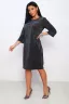 Модель свободного силуэта, длиной чуть ниже колена, рукав 3\4 . Перёд и нижняя часть рукава из трикотажной красивой эко-кожи , платье уместно будет и в повседневной носке для офиса, и подойдёт в качестве вечернего торжественного наряда. Ткань приятна к телу, не мнётся, износостойка.