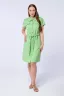 Женское платье в стиле "сафари" отличный вариант как для офиса, так и для летних прогулок. Центральная застёжка на пуговицах создать правильную вертикаль и вытянет силуэт, а пояс выгодно подчеркнёт изгибы фигуры. В изделии предусмотрены боковые карманы и плечики, которые при желании можно отпороть. Лён, из которого выполнено платье, является экологичным и дышащим материалом. Пуговицы из дерева отлично дополняют дизайн платья.