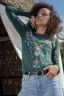 Джемпер просто замечательный! Материал приятный, мягкий, не раздражает кожу. Цвет изумрудный освежает образ, смотрится дорого и элегантно. Особенно понравились рукава с интересным принтом и блестящими элементами.