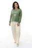 Свитшот свободного силуэта, прямого кроя. На переде печать с серебром, которое будет эффектно искриться на солнце. Линия плеча спущена. Манжеты из кашкорсе подобраны в тон ткани. Низ изделия регулируется шнуром.