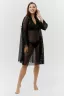 Туника женская пляжная, свободного силуэта с капюшоном и длинным рукавом. Декорирована хольнитенами.