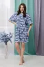 Туника в стиле "оверсайз". Прямая, свободная, длиной выше колена, с капюшоном. На капюшоне расположены "ушки". Рукав короткий. В нижней части боковых швов обработаны разрезы.